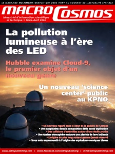 L E MAGAZ I NE MULT IMÉD I A GRATU I T QU I VOUS T I ENT AU COURANT DE L’ AC TUAL I T É S PAT I AL E bimestriel d’information scientifique et technique ✶ Mars-Avril 2026 www.astropublishing.com info@astropublishing.com www.facebook.com/astropublishing ✶ ✶ La pollution lumineuse à l’ère des LED Hubble examine Cloud-9, le premier objet d’un nouveau genre Un nouveau ‘science center’ public au KPNO • Un nouveau regard dans le cœur de la galaxie du Compas • Une exoplanète dont la composition défie toute explication • Des collisions d’astéroïdes autour d’une étoile proche • Une épaisse atmosphère entoure une planète de lave brûlante • L’origine du plus long sursaut gamma jamais observé • Trous noirs supermassifs à l’origine des explosions cosmiques bleues