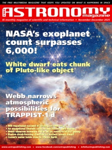 THE FREE MULTIMEDIA MAGAZINE THAT KEEPS YOU UPDATED ON WHAT IS HAPPENING IN SPACE Bi-monthly magazine of scientific and technical information ✶ November-December 2025 www.astropublishing.com info@astropublishing.com www.facebook.com/astropublishing ✶ ✶ NASA’s exoplanet count surpasses 6,000! Webb narrows atmospheric possibilities for TRAPPIST-1 d White dwarf eats chunk of Pluto-like object • Will Hayabusa2 succeed in landing on 1998 KY 26 ? • An exceptional Einstein cross reveals hidden dark matter • Webb observes immense stellar jet on outskirts of our galaxy • Elusive cloud-forming chemical on ancient brown dwarf • Comet’s water holds clues to life on Earth